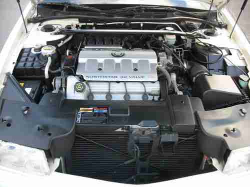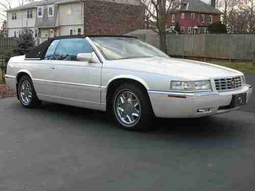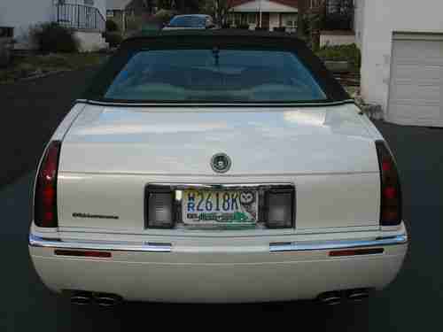 FOR YOU CONSIDERATION TODAY IS A BEAUTIFUL 1998 CADILLAC ELDORADO ESC FINISHED IN WHITE DIAMOND PEARL PAINT WITH BLACK ROADSTER TOP AND CASHMERE LEATHER INTERIOR. IT HAS THE 32 VALVE NORTHSTAR V8 ENGINE WITH 74,000 MILES AND AUTOMATIC TRANSMISSION WITH TRACTION CONTROL. IT HAS ALL OPTIONS WITH THE EXCEPTION OF THE MOONROOF. IT IS EQUIPPED WITH POWER EVERYTHING, HEATED SEATS, CHROME WHEELS AND GOLD PACKAGE. YOU WOULD BE HARD PRESSED TO FIND ONE CLEANER WITH THIS MILEAGE. SELLING FOR AN OLDER COUPLE LOOKING TO DOWNSIZE TO ONE VEHICLE. ALWAYS GARAGED AND PAMPERED, THE ENGINE AND WHEELWELLS ARE AS CLEAN AS THE REST OF THE EXTERIOR.