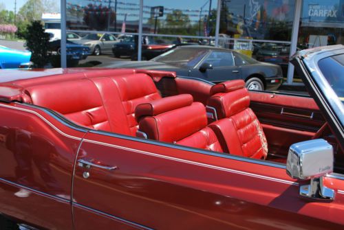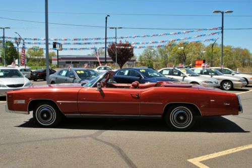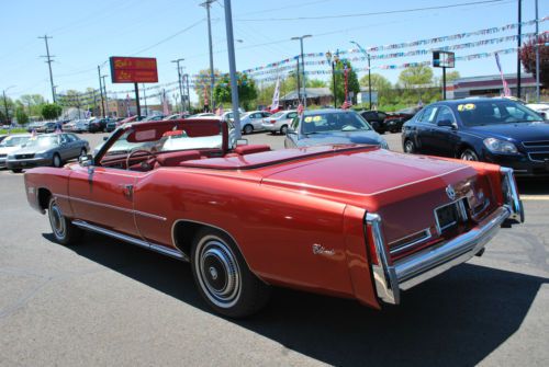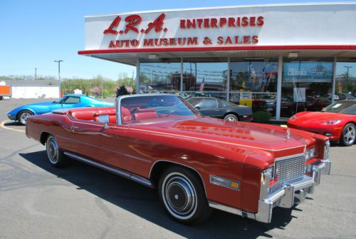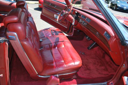 YOU ARE VEIWING A ORIGINAL, 84,000 MILES, 1976 CADILLAC ELDORADO CONVERTIBLE. ONE OF THE LAST CADILLAC CONVERTIBLES BUILT IN THE U.S. IT IS BEAUTIFUL IN EVERY SENSE OF THE WORD ,RED EXTERIOR AND LIPSTICK RED LEATHER INTERIOR .LET YOURSELF BE THE OWNER OF ONE OF THE BEST IN THE COUNTRY. IT HAS ALL CADILLAC OPTIONS STANDARD ON CADILLACS. This example comes equipped with AM/FM 8 TRACK AND AN AFTER MARKET SATILITE RADIO WITH NEW SPEAKERS ALL AROUND. 500CI V8, power soft top, telescopic steering wheel, power windows and door locks, cruise control, power driver seat, climate control A/C and much more. Everything works as it should and it is without a doubt one of the best and most original 76 Eldorado Convertibles available anywhere. IF YOU DREAMED OF OWNING ONE WHEN THEY FIRST CAME OUT AND COULD NOT FOR WHAT EVER REASON. NOW IS YOUR CHANCE. MOST PEOPLE NEVER GET A SECOND CHANCE IN LIFE. This is a wonderful car to drive and relax. Any questions call us at 215-781-3790. Car is for sale locally so we do reserve the right to end auction early. Bill |
