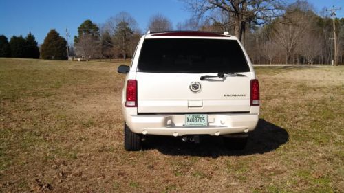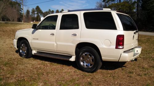 You are looking at a MINT 2003 Escalade!!!! This baby is perfect in every way. The miles are correct and true and when you drive this vehicle you can tell. The old saying of it "drives like a Cadillac", is true about this ride. The tires on this Escalade are like new. The interior, exterior and motor of this car are near flawless. Also, this Escalade is equipped with the rear entertainment center for those long rides. We can not say enough about this Escalade. It runs and drives like a dream and is ready for anything. I would not be afraid to take this car on a cross country adventure!!!! Please look at all the pictures for yourself and you will see how nice this car really is. We are a small car dealership that really just enjoys cars and we do this as a hobby. Please call with any questions you may have. You will not be disappointed in any way!!!!! Thanks for looking. 864-834-5353.