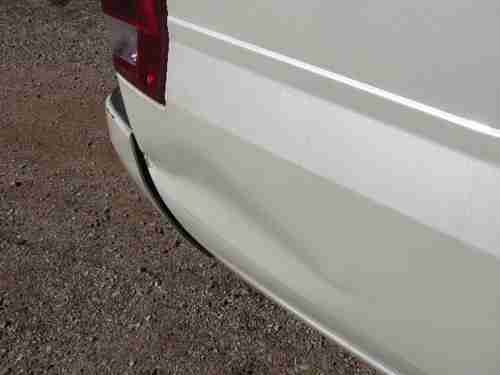 Has small dent and scuff on drivers side, dent rear right quarter and cracked bumper plastic right rear (see pictures).