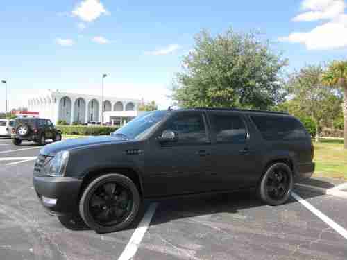 This 2009 Cadillac Escalade ESV, with 92,900 miles. This truck was involved in a minor theft, it has a Florida rebuilt title. When we received the truck, it was painted Matte Black and the stock 22'' rims were replaced for 26'' rims. It is fully loaded with entertainment package Tv's , Brand new Pioneer Double din touchscreen, with sirious sattilite, and hands free unit, LED allumination through-out the truck, Powered Step Rails, Power Mirrors, Navigation, Bluetooth, Heated Leather Seats. This truck is a One of a Kind; it has the luxury, low miles, entertainment, Onstar Safety, Custom paint and rims, and you can own it for a low price! For further details, please do not hesitate to call at (321) 506 8339 ask for James or (910) 478-8587 ask for Chris.