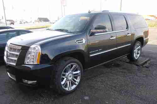 this is a 2010 black cadillac escalade esv platinum edition. Has factory navigation with factory panasonic 7 inch monitors in the rear of the truck. also has a dvd headrest monitors. Dark brown leather seats. the truck is all factory. truck is very well taken care of. comes with a 6.2 v8 engine flexx fuel. has the electric step bars that go down when you open the door. the truck has almost 30,000 original miles. very good on gas. the transmission is very good. the Truck does have a REBUILT TITTLE. was in a minor accident but has been rebuilt and put back together to original condition. any questions or concerns please feel free to contact me at . .