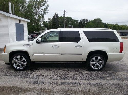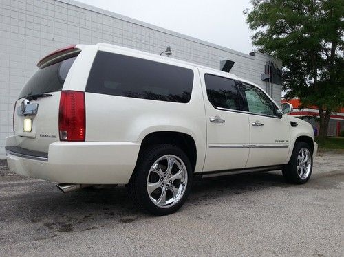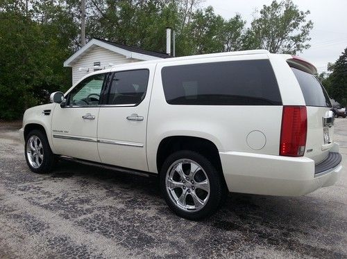 You are looking at a 2011 Cadillac Escalade ESV Premium Collection edition SUV. This vehicle is in excellent shape inside and out! The exterior is shown in the optional "White Diamond" paint and warm inviting cashmere interior with cocoa accents. Equipped with a very powerful 6.2L V8 6-speed automatic that produces 403HP! The interior cabin features a factory navigation system, rear-view camera, Bose 5.1 surround sound, xm radio, bluetooth, usb port, 14-way pwr front seats with heated and cooled cushions and backrests, 2nd row captain bucket seating, 2nd row power release, 3rd row bench, power liftgate with liftglass, remote start, power adjustable pedals, power telescope wheel with heated steering wheel, rear audio system controls, itellibeam hid headlamps, blind-spot zone alert, power folding mirrors, rear seat entertainment system with 2 tv screens, and power retractable assist running boards!