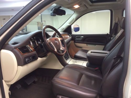 White Diamond Beauty. The Platinum model comes with every possible Cadillac option, including DUAL EXHAUST, AWD, 4 DVD Players, Heated and Cooled Seats, Navigation, Upgraded Leather