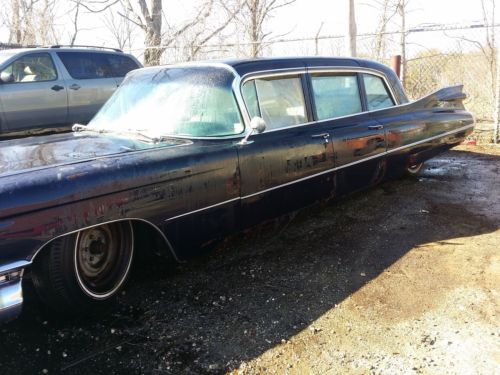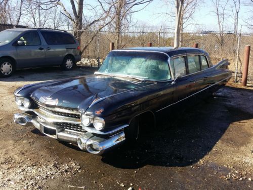 1959 CADILLAC FLEETWOOD LIMOUSINE BEEN IN STORAGE SINCE 1972 RIGHT HERE IN LONG ISLAND NEW YORK OWNED BY A PRIVATE COLLECTOR, FOR THE LAST 50 YEARS. THIS CAR IS SO COOL TO LOOK AT ITS REALLY A PIECE OF ART. THIS CAR IS NOT CURRENTLY RUNNING AND HAS NOT RUN IN A LONG TIME. IT IT TOTALLY ORIGINAL AND HAS NOT BEEN MOLESTED OR PLAYED WITH BY ANYONE. THIS CAR NEEDS A TOTAL RESTORATION TO BE A DRIVER AGAIN, THIS CAR WOULD BE GREAT CAR TO RESTORE AS ITS VERY RARE AS THEY MADE LESS THAN 800 OF THESE VEHICLES. THIS CAR HAS SOME REALLY COOL RARE OPTIONS, HERE IS THE LIST. POWER WINDOWS POWER SEATS POWER TRUNK SUCK DOWN CRUISE CONTROL TRI POWER MANIFOLD WITH CARBEURATORS AND GOLD AIR CLEANER FLEETWOOD BADGING AIR CONDITIONING AIR BAG SUSPENSION FOLDING SEATS FOR PASSENGERS IN THE BACK OF CAR POWER STEERING V8 -390 MOTOR ENGINE HYDRAMATIC TRANSMISSION THIS CAR IS A REAL HEAD TUNER, AND THE LOOK OF THIS CAR IS SO BEAUTIFUL, ITS JUST WAITING TO GET REDONE! ANY QUESTIONS PLEASE CALL 516 233 7788 MICHAEL I WORK WITH A LOCAL CAR HAULER SO TRANSPORT IS NO PROBLEM. COME LOOK IN PERSON ANYTIME FARMINGDALE NY 11735 I WORK WITH A LOCAL CAR HAULER AND THIS CAR CAN BE AT YOUR DOOR IN JUST A FEW DAYS. 516 233 7788 MICHAEL |