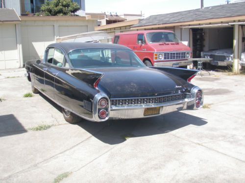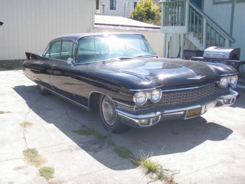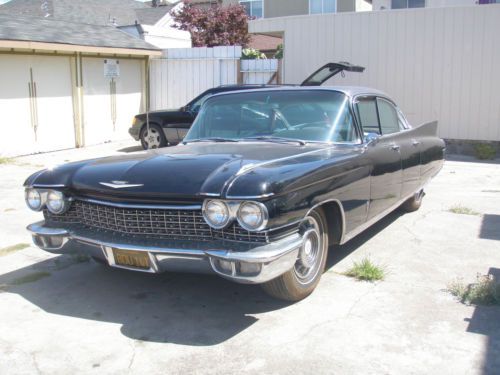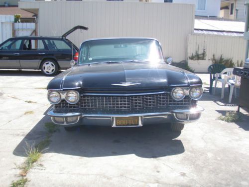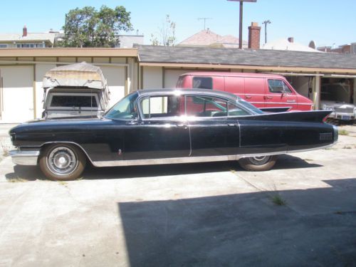 We saved the BEST for last. Selling the last of a large Cadillac collection. Here is a 1960 Cadillac Fleetwood. It is finished in black on black with white leather. The interior is beautiful with the exception of the very top of the rear seat. The package tray has not been cut into. The headliner does not sag. The power seats and windows work fine. Even the front quarter window still works on both sides. It has the rare factory, vinyl top and the even more desirable factory A/C. All the components are present and will need a recharge or conversion. Choice is up to the new owner. The Fleetwood could stand to be painted or enjoyed as is. Paint does have some blemishes and is driver quality, please see photos and video. It rides on thin biased ply whitewall tires. All four hubcaps are present. The chrome bumper still shine but have pitting on them, see photo and video. The dash is not cracked. The wonderbar radio is still present in the dash. The trunk is clean. The jack and jack tools are present. This is the last big Caddy in the collection. When's the last time you've seen one of these for sale, let alone one that is this original and complete. Selling for NO RESERVE.With all my auctions, a few requirements. First, NO PAYPAL. Second, any and all bidders with less than 10 feedback, and/or negative feedback must contact seller prior to bidding with their full name and contact number or their bid will be cancelled and their user id blocked from additional bidding. Third, you are bidding to own, not look and make excuses. Any and all inspections welcome during the auction period, not after. Once the auction is completed, you are the new owner.Also, selling in AS-IS, Where-Is condition with no warranties, expressed nor implied. Seller has represented vehicle to the best of his knowledge and makes no warranties regarding vehicle that are unknown to him at time of sale. Vehicle is also advertised locally and seller reserves right to end auction early and cancel any and all bids if sold outside of ebay. Any and all interested bidders may email seller for a buy it now if they cannot wait for the end of the auction.So, with a big "Elvis loves Cadillacs" yell, let the auction begin on this fine 1960 Cadillac Fleetwood.