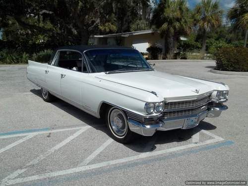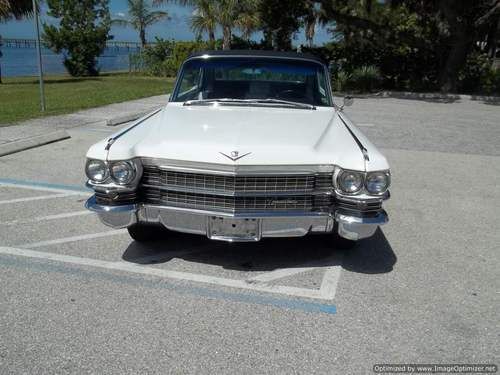 1963 Cadillac 60 Series Fleetwood. Very Original car. White exterior with Black vinyl top. Paint has some checking but the car is still very presentable. Vinyl top is in excellent condition. The only rust issue is underneath the vinyl behind the rear windows. The rest of the car is Very solid. Under carriage of car is very clean with no rust issues. All the exterior chrome is in very good shape. Has new tires and new spare. Original 390 V8 Engine. Everything works with the exception of the clock and A/C needs to be charged or converted. Interior is in excellent condition and the dash is also. All gauges work. Windshield and door glass is great. Always been garaged. Runs and Drives excellent. I've driven the car long distance with no problems. Overall condition is Very nice for a 50 year old car. It's a lot of fun to drive. You can call if you have questions 941-626-3674