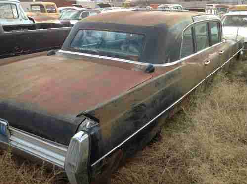 This is a 1964 Cadillac limousine. Just rescued from the Arizona desert. No motor or transmission, fairly nice body. Will need some floor panel repair. Black car like a limo should be. Factory ac. Cruise to your next rat rod car show in style! If you have additional questions please call 435-770-3337. Thanks