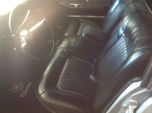 This auction is for a true survivor car! This in the wrapper Caddy is absolutely gorgeous inside and out. I purchased this piece of American Prestige form an 86 years young gentleman who owned it for several years but barley took it out of the garage as the original A box mileage of 53k will support.It was originally purchased by a funeral parlor and used for processions throughout the 70s.the original black leather interior looks to be barely sat on,the black vinyl top is absolutely like showroom condition. The paint on the car is nice ,I would rate it an 8 on a 1-10, mainly due to a small ding on the trunk lid,said to be caused by a small step ladder falling against it while in storage. Barley a dent but paint is missing about 2 square inches or less.i had it towed to my mechanic where he pulled the entire fuel system and boiled the tank,rebuilt the carb ,blew out all of the lines. I also had it completely tuned up and all the fluids changed. I had the brakes gone through and fluid flushed.