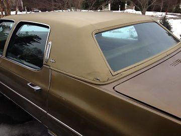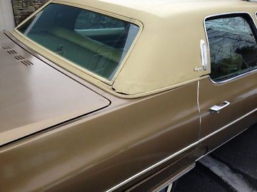 Exterior Color: 94/Chalice Gold Firemist / Interior: Medium Maize (Gold) 55,252 original miles - engine runs very strong. Needs exhaust manifold gasket. Recently installed new muffler and resonator, plugs, wires, and rebuilt carb. Interior is in good condition (no rips/tears) - leather in very good shape. Headliner is excellent. Needs bodywork (pictured) - rust on lower fenders/quarter panels. Some "crunchiness" around rear window(pictured) under vinyl top. Tires have a lot of meat left on them (pictured). Chrome is good (with exception of rear bumper). AM/FM Radio comes in intermittently (auto seek works). Car has A/C (assume just needs a charge). I have a lot of receipts from original owner. Please e-mail with questions. |