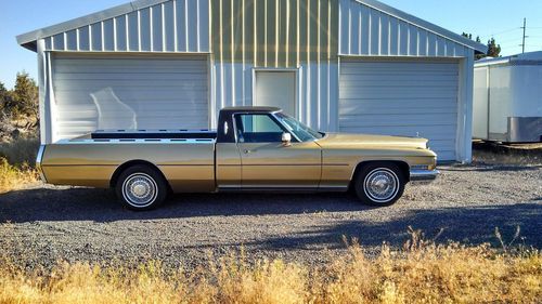 1971 Cadillac Fleetwood Custom professionally converted to an El Camino style at a cost of over $18,000. Running gear is all stock. It runs and drives very well. New tires, new air conditioning compressor, and new battery. Even the cruise control works. Believed to be actual miles. Come and check it out yourself or have a third party do it. Sold as is, where is. A one of a kind vehicle that would make an excellent addition to any collection. Although this is a very nice car, I always recommend that you have the vehicle inspected before bidding. I reserve the right to end the auction at any time. Contact number: 541-480-0362.