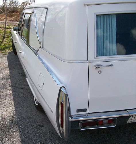 Car has a 472 with 28,860 actual miles. New belts, Alternator, and Battery. The only mechanical issues are a small oil leak and a crack in the smog control pump bracket (see pictures) Some paperwork in the dash from the original owner including yearly inspections noting mileage through 1987. It was purchased in 1974 by a funeral home in King, NC and they used it until 1987 and sold it to a small firm in West Virginia, they traded it in on a newer one in 2004 and it came into the possession of an individual in the Chattanooga area. It has been out of Service since 2004. The individual and the dealer he bought from say that these are the actual miles. It drives strait and true just as a Cadillac should, although it might benefit from a good tune-up as it idles a little rough at time but has plenty of power. The brakes work well and the transmission shifts fine. The man I got the car from said that on the way back from the dealer in Virginia the transmission began leaking and he in turn had it rebuilt when he got it home (2004). It also has an external transmission cooler now.