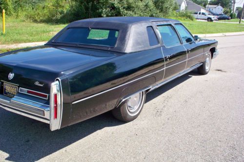 nice 75 limo. with someone with the time and a little money AND knows what they are doing, this car would be a gem. partition window works fine. all power windows, door locks front leather seat to. the a/c needs work, the oringinal radio don't work. it comes on and the antenna goes up but theres no sound. i do not like emails so call with any concerns at 302-456-0208 thanks.
