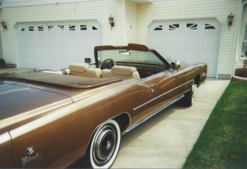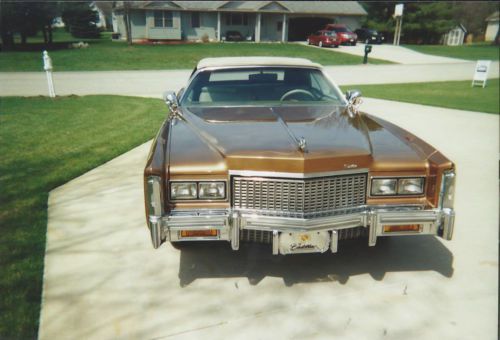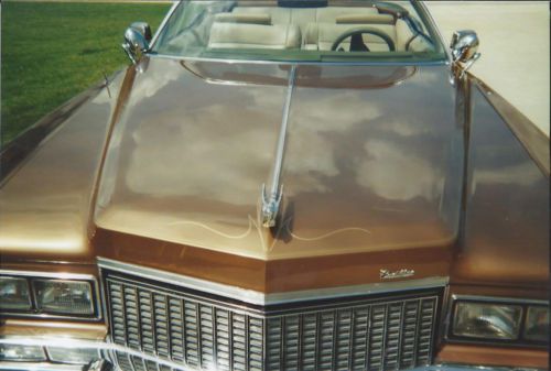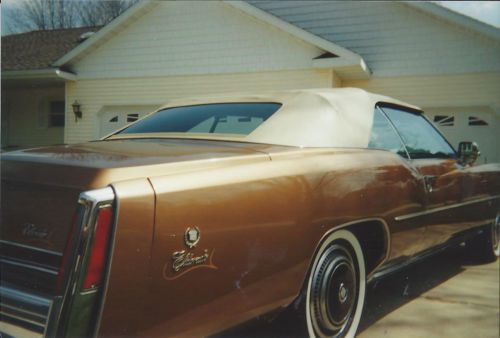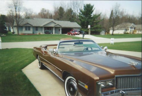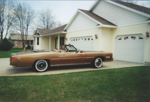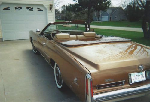 For sale here is a show quality 1976 Cadillac Fleetwood Eldorado Convertible with just over 71,000 original miles. This Eldorado was purchased new at a dealer located in North Carolina, and the owner held onto it for more than 30 years! I bought it from a Florida resident 3 years ago, and have stored it during the winter months here in Michigan. Since I've owned the car, it has only been driven in the best of weather, and has been garage kept otherwise. I've put a lot of time and effort into making this classic stand out in a crowd. I have a collection of papers and documentation including the factory window sticker, owner's manual, and receipts going all the way back to the first owner.The car is in beautiful condition, and is ready to drive. The matching number 500cid V-8 engine purrs like a kitten through a dual exhaust system that I had installed. The carburetor has recently been rebuilt, and I've added many new mechanical items including: Front axles, ball joints, and American Classic wide white wall tires. Overall this classic Cadillac is truly gorgeous. The car has been repainted in the factory color (Brentwood Brown Metallic), and that remains in great condition. I had a local artist add subtle pinstripes in gold to set off the body lines. Included is a new fiberglass parade boot painted to match the body color that can be seen in the photos. The hood ornament is a 1939 Cadillac piece, and the original is also included. The vinyl top and the rubber inserts on the rear bumper were replaced last year too! All the sheet metal is straight, damage, and rust free. The interior is just as nice as the exterior. The steering wheel has been replaced, as has both of the dashboard covers. The stereo and speakers have all been upgraded, and I still have the factory deck that is included. There is a custom center console that I had made which houses some of the new speakers and adds functional cup holders. Bid to own this stunning Cadillac as my reserve price is very fair. I've invested more time and money than I could possibly recoup from this auction. What that means for you is a great deal while this lasts...don't miss out on this opportunity! If you have any questions, please feel free to contact me @ (231)775-5734 (Ask for Ron). Thanks for looking and GOOD LUCK! |