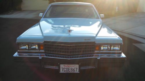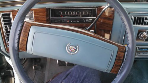 This is a sharp clean rust free survivor! 1978 Cadillac Fleetwood Brougham 73,400 original miles Columbia blue (#21) Dark blue top (C) Blue cloth interior (#24C) Car comes with original window sticker and paperwork This Cadillac was purchased new at Bill Copps Cadillac in Vancouver, Washington on November 11, 1977 by Mr. Louis Krize. The car was lovingly cared for by Mr. Krize and was soon brought to his home in Arizona where it was used lightly and always garaged. After Mr. Krize passed away a friend of his purchased the car from his estate and he drove the car lightly as well. Soon after the car came to California and I was able to purchase the car. The car has been serviced and cared for and it shows. The car starts and runs like it should and it is smooth and powerful! All options work including level-ride and A/C and power antenna. This is a great driving car and handles nicely around town or on the freeway. Drive anywhere! Every angle of this car shows nothing but beauty! Car comes with two sets of keys and one set of uncut gold keys from 1978 in the pouch. Interior is so original and no cuts rips tears etc. The car has been fully serviced and needs only a new home. Thousands of dollars just spent on the following work done this year. New master cylinder/booster Belts/hoses Battery Muffler Cooling system flush Transmission service Rear differential service Complete tune up Rebuilt A/C system (Compressor etc) coverted to 134A Heater core Valve cover gaskets New front shocks 4 new American Classic 1.6" whitewall tires Power steering high pressure line New fuel pump and hoses Alignment The only work left to do is the headliner that is loose as they all are. It is tacked up but intact and useable. The interior is amazing and clean and soft cloth (not sunbaked) wood trim is exceptional! Door panels and dash are crack free. The body is straight and rust free, the paint is shiny and has very few imperfections. Look at the reflections in the paint in the pictures. The chrome is amazing as well. This car is clean sharp and almost a show car! There were 36,800 Fleetwood models produced in 1978, how many remain? You see many Coupe deVilles and Sedan Deville's But very few Fleetwood models. And when you do see them they are almost never in this great shape. This is one you can show or drive, your choice. Please call with questions or to make an appointment to see this amazing car. (760) 636-8884 |