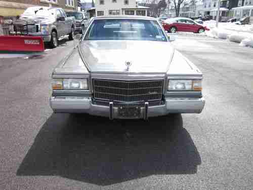 NO RESERVE AUCTION!. For a clean low mileage, Only 80,000 miles! 1990 Cadillac Fleetwood Brougham D'elegance edition. The exterior is straight , clean with no rust issues. The under side also no rust issues. The interior is a gray leather with no rips or tears , the dash is also is great condition. All power options work except for antenna. Recent repairs made are, new alternator, exhaust, rear shocks, brakes, newer tires and rebuilt carburetor. Now the minor repairs needed are the rear right door won't open, the inside linkage for the door handle may have come off, the air conditioner not working, may need a charge. the head liner sags and will need to be replaced and the vinyl top is worn and could use replacing. Car drives, shift and brakes perfectly. Great chance to own a low mileage, classy and soon to be a collectors item, cadillac brougham. Please call or email with any questions. 315-866-1320. Buyer responsible for shipping. a $500 deposit due at auction end.