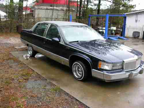 1993 CADILLAC FLEETWOOD BROUGHAM LOWRIDER. DARK BLUE WITH DARK BLUE LEATHER. FULLY LOADED WITH ALL POWER OPTIONS INCLUDING DIGITAL DASH. V-8 350 ENGINE.VEHICLE ONLY HAS 81,000 ORIGINAL MILES. WAS A PREVIOUS SHOWCAR. BODY IS EXCELLENT. NO DINGS OR DENTS AND PAINT STILL SHINES LIKE NEW. HAS QC CHROME DOUBLE SPOKE WHEELS. HAS A REAL CHROME CC ROLLS ROYCE GRILL . RUNS AND DRIVES GREAT. LOWRIDER HYDRAULICS WERE PROFESSIONALLY INSTALLED AND LOOK GREAT. HOOD AND TRUNK ARE MIRRORED. HAS NEW ALPINE STEREO SYSTEM. NEED TO SELL ASAP. . HAVE CLEAR TITLE. CALL CHRIS WITH ANY QUESTIONS (404)644-4083