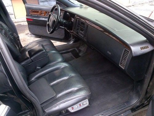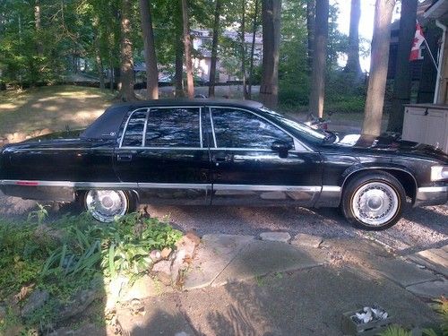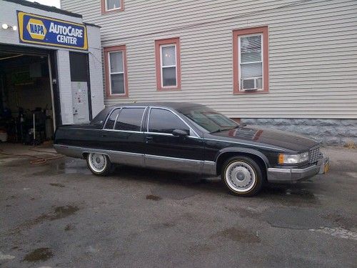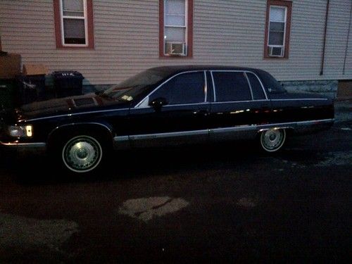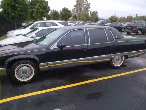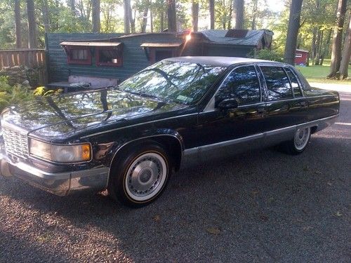 1994 Cadillac Fleetwood Brougham overall good condition. Black on Black with Black carraige roof. Just slapped on some Vogue tires and keeping it the same price. (tires are 249.00 a piece) Car has the factory LT1 in it with newer flowmaster exhaust, sounds good, nice rumble when you get on it a little bit. Running synthetic Mobil1 oil. Runs great tons of power , transmission is smooth and cruises like a cushion of air on the highway. Some rust through in the front left fender and some bubbling in the left rear quarter, little rust on rear bumper (spotless rear chrome bumper available for extra $$$). Black leather Interior is in good condtion some wear and tear. Car has very good Vogue tires, brake lines have been replaced, replaced brake booster and brakes are good. 145,000 miles and increasing as I drive it daily. Passenger side rear window does not go up and down and A/C does not work. Good Luck Bidding.. these black on black fleetwood brougham's are getting harder and harder to find don't miss this one.. will assist with shipping at the buyers expense..