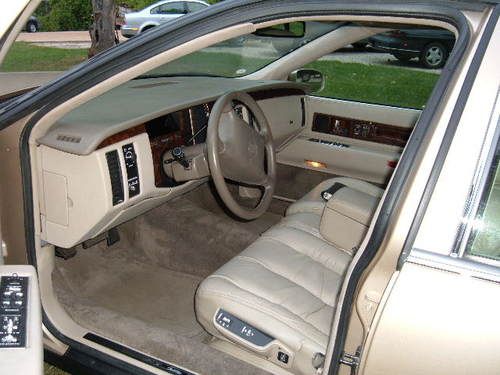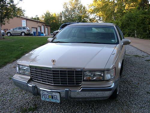 1995 Cadillac Fleetwood Brougham - $6,500. 87,941 miles. All leather interior in great condition. Carpeting in great condition. We believe this to be a two-owner car. Always garaged. Almost new tires. This, of course, has the Corvette V8 engine which is factory equipment. AM/FM, cassette and CD. We have the original window sticker on this car which states 17 miles to the gallon City and 25 miles to the gallon Highway. Not bad for a total luxury car. It was equipped with a factory tow package which includes upgrades for suspension and cooling system. Beautiful gold exterior paint. Gold vinyl top in great condition. Vogue Chrome wheels. We are selling this car on consignment for an older gentleman. He has owned the car since 2005. This car has no after market equipment. Has Cadillac factory trailer light system in trunk as you will see in the picture. Car does have a few body imperfections as any 1995 model car would have of which we've provided pictures. They are: Left front bumper side panel, right front bumper guard, right lower rear rocker panel, small tear in left front seat side skirt near power seat switches, antenna is stuck, vogue emblem on right front wheel. Miscellaneous small dings and scratches. Car is being sold as is, where is with no warranties expressed or implied. Car will pass Missouri Safety and Emission Inspections. Email questions, or feel free to call Charlie at Ed Wilder Auto Sales, 636-343-1670. Sold as pictured and described. CASH ONLY!
