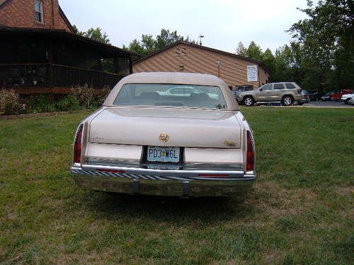 1995 Cadillac Fleetwood Brougham - $6,500. 87,941 miles. All leather interior in great condition. Carpeting in great condition. We believe this to be a two-owner car. Always garaged. Almost new tires. This, of course, has the Corvette V8 engine which is factory equipment. AM/FM, cassette and CD. We have the original window sticker on this car which states 17 miles to the gallon City and 25 miles to the gallon Highway. Not bad for a total luxury car. It was equipped with a factory tow package which includes upgrades for suspension and cooling system. Beautiful gold exterior paint. Gold vinyl top in great condition. Vogue Chrome wheels. We are selling this car on consignment for an older gentleman. He has owned the car since 2005. This car has no after market equipment. Has Cadillac factory trailer light system in trunk as you will see in the picture. Car does have a few body imperfections as any 1995 model car would have of which we've provided pictures. They are: Left front bumper side panel, right front bumper guard, right lower rear rocker panel, small tear in left front seat side skirt near power seat switches, antenna is stuck, vogue emblem on right front wheel. Miscellaneous small dings and scratches. Car is being sold as is, where is with no warranties expressed or implied. Car will pass Missouri Safety and Emission Inspections. Email questions, or feel free to call Charlie at Ed Wilder Auto Sales, 636-343-1670. Sold as pictured and described. CASH ONLY!