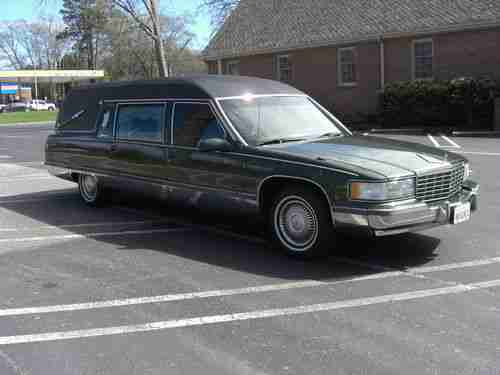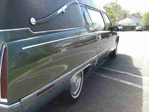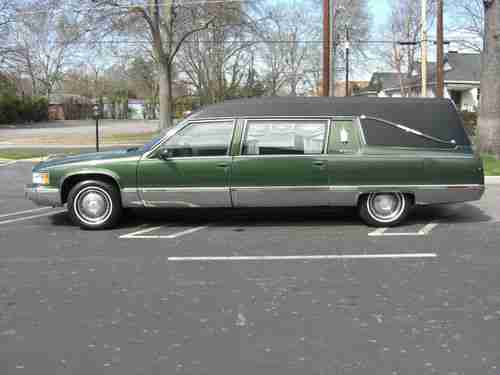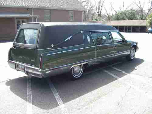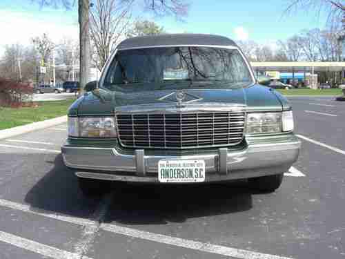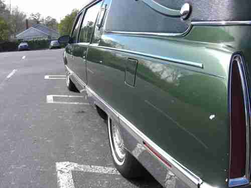 1996 Cadillac Fleetwood S&S Masterpiece Funeral Coach, 5.7L V8, original owner, rust free southern car that has always been kept inside. Fully maintained with the normal wear and tear for a car of this age and mileage. Michelin radials around 50%, a/c blows cold, all accessories work, custom green paint with black tuxedo vinyl top. This is currently owned the original owner which is a funeral home, we have upgraded our fleet and need to sell this fine funeral coach. I have listed a buy it now price, but if you are seriously interested in the coach, let me know your best offer.
