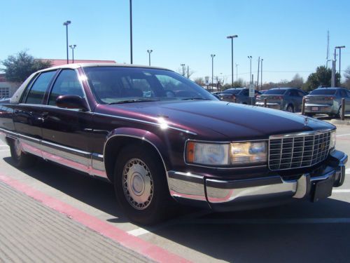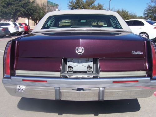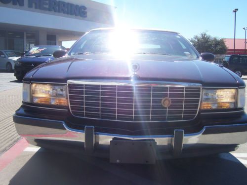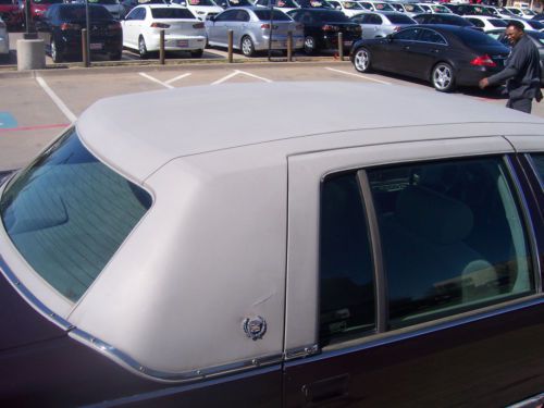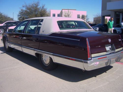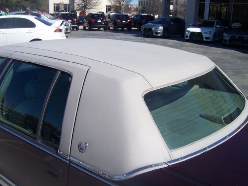 Up for sale is a very great looking and great running 1996 Cadillac Fleetwood. It has only had 2 owners and we have all of the service records from the second owner. The exterior is clean for the year and miles and the interior is just as nice. This is a NON SMOKER Cadillac!! Regular door dings and minor scratches that you might expect but nothing out of the ordinary. The top is in good shape with one minor tear on the passenger side above the Cadillac emblem. See the pics. It's really minor and could be repaired easily. The engine runs great and the transmission shifts great. There was a new transmission put in the Cadillac at 124,000 miles. The air conditioning blows nice and cold. Leather is in really good shape and so is the rest of the interior. The gentleman that traded it in took really good care of this Fleetwood and it shows. Tires are super meaty with tons of life left. See the pics. The traction control light stays on but it doesn't affect the way the Cadillac drives. The paint still shines on this beauty and the leather is still nice and soft.