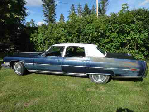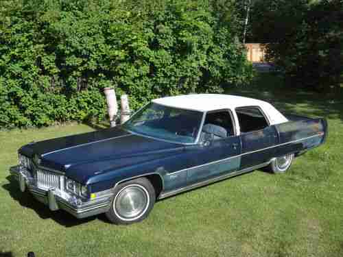 WE ARE SELLING A 1973 CADILLAC FLEETWOOD BROUGHAM 4 DOOR 472. THIS CAR WAS PARKED AT THE AIRPORT FOR OVER 13 YEARS COVERED IN THE EMPLOYEE PARKING LOT. THEY GOT TIRED OF PLOWING SNOW AROUND IT LAST YEAR AND FOUND THE OWNER TO BE NO LONGER LIVING. THERE IS A FREE AND CLEAR TITLE FOR THIS CAR READY TO GO. WE HAD TO GET NEW KEYS FOR IT AND GET A NEW BREAK MASTER CYLINDER AND NEW SEAT MOTORS FOR THE CAR BECAUSE IT SAT SO LONG.WE PULLED ALL THE PLUGS AND SHOT OIL DOWN THE CYCLINDERS,PUT NEW GAS IN IT AND A NEW BATTERY AND IT FIRED RIGHT UP GREAT.