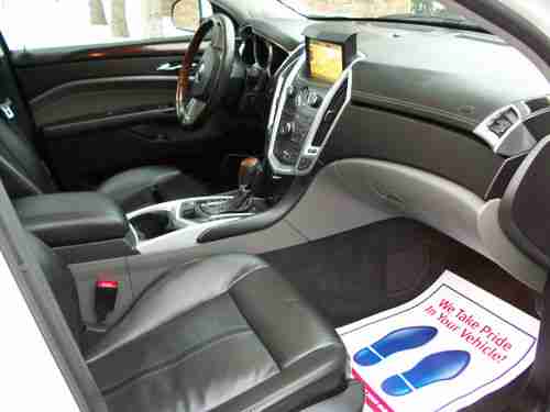 You are viewing an incredibly gorgeous and one a kind Diamond Pearl white matched with a gorgeous tan leather 2010 Cadillac SRX Sport Utility in immaculate condition...........2.8 TURBO CHARGED V6 engine with lots of power to boot that cranks out an amazing 300 horsepower---This TURBO engine is VERY VERY RARE on an SRX and was only made on 10 % of all the 2010 models so this is a Very unique engine and does an amazing 0-60 sprint in just 6.7 seconds!!.............27,010 miles...........4X4/AWD (All-Wheel-Drive)..........Voice activated 40 GB hard drive based NAVIGATION system with the premium BOSE surround-sound audio system with real time traffic/an extremely well designed ipod intergration interface which lets you record/pause and rewind live radio and satellite radio/live satellite feed for map display to guide you anywhere/plays dvd/movies while vehicle is in park mode/6disc cd changer---------This is an extremely intelligent Navi system which also displays current gas prices and your every day weather which no other Navi system displays........XENON ADAPTIVE HEADLIGHTS which adapt to your steering wheel with every turn and is a great night saftey feature $2,600 value)..........Onstar on demand.........DUAL POWER HEATED & COOLED SEATS in premium NEW condition..........NAVIGATION system pops up with the push of a botton and neatly folds away with vehicle is on a off mode for security purposes...........Sirius/XM satellite radio.............Am/fm/6disc cd changer.............REVERSE BACK UP CAMERA which displays live video feed of rear while vehicle is in reverse mode.........Factory Remote start built in..........Rear backup sensors which sound off an alarm when approaching an object while vehicle is in reverse mode...........Premium BOSE audio system............Power sliding and tilting PANOROOF which is pretty much an glass roof which has a gorgeous interior appeal ( see pics)...............Am/fm/cd.............Heated power mirrors............ONSTAR on demand.............Ambient interior lighting............Vehicle anti-theft.........Power steps pedals which you can accomodate to your preferred foot settings..........Dual zone automatic climate contol..........Rain sensing windshied wipers (has built in sensors behind the windshied that automatically deploy once a drop of rain hits your windshield....Dual zone automatic climate control....premium SPORT tuned SUSPENSION... ........GM stabilitrack electronic stability..........Cruise control........Steering wheel controls.......20 Inch SPORT factory CHROME wheels with 20 inch high performance tires with great tread on them (Best wheels out there)...............Tire pressure monitoring system ( alerts you when one of your tires is low on air).........Limited slip rear differential...............Bluetooh connectivity............Vehicle anti-theft and so much more!!!!------all this while performing flawlessly down road............runs/drives like new..........absolutely BEAUTIFUL beautiful car in/out with an unbeatable exterior color...There is not an option that this Gorgeous vehicle does not have...All this beauty and the TURBO power and all while mated to a very sophisticated ALL-WHEEL-DRIVE system that can tackle any weather!