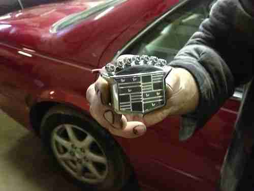 The revised sports sedan seems to be sporting a new front bumper and less egg-cratey grille with Caddy's new wreath-less badge at its center, all apparently put in place to bring the sedan more in line with the new ATS coupe.
