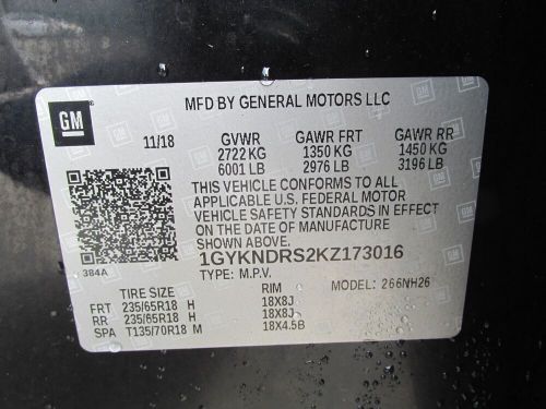 VIN (Vehicle Identification Number): 1GYKNDRS2KZ173016