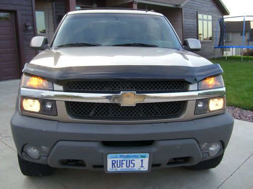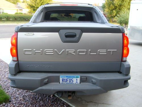 I AM SELLING MY 2002 CHEVY AVALANCHE 2500 4X4, FOR THOSE OF YOU WHO DON'T KNOW-THIS IS THE ONLY YEAR CHEVROLET EMBROIDERED THE BOWTIE IN THE SEAT BACKS, ALSO THEY SAY THIS YEAR ENGINE HAD 10-20 MORE HP THAN THE LATER YEARS. THIS THING IS LOADED, I THINK THE ONLY OPTION IT IS MISSING, IF IT WAS EVEN AVAILABLE IS DVD/NAV. IT HAS DUAL LEATHER HEATED POWER SEATS W/ NO RIPS OR TEARS, IT BASICALLY HAS EVERY OPTION, "THAT SUMS IT UP", I WILL NOT LIST THEM ALL, EVEN HAS REAR LOCKING DIFF. THE WARRANTY IS BASICALLY BUMPER TO BUMPER WITH A $100 DEDUCTABLE. LET THE PICS DO THE TALKING. YOU ARE WELCOME TO COME TAKE A LOOK AT THIS VEHICLE BEFORE BIDDING, BECAUSE ALL BIDS ARE BINDING, I AM DESCRIBING IT TO THE BEST OF MY KNOWLEDGE, BUT NO ONE IS PERFECT AND COULD MISS SOMETHING. REMEMBER THIS TRUCK SPENT THE FIRST 9 YEARS OF IT'S LIFE IN SALT FREE COLORADO, SO NO RUST! I ONLY PUT ON 20,000 MILES IN 2 1/2 YEARS AND DID NOT DRIVE IT IN THE WINTER UNLESS ABSOLUTLY NECESSARY, I FLEW OUT TO COLORADO TO PICK IT UP, JUST SO I COULD HAVE A SALT FREE VEHICLE BECAUSE I HATE RUST!