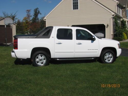 Very clean 2007 Chevrolet Avalanche Z71 4X4. Mechanically this Avalanche is 100%. New battery, all fluids changed, new thermostat, new spark plugs, tires are 80%, new front wheel bearing. Runs great. Beautiful white exterior with two tone leather interior (black/grey). Interior of vehicle is in great shape, never been smoked in. Truck is good on gas, I am getting 17mpg around town and 21+ on the highway. Only reason I am selling is because my daily commute is going from 12 miles to 45 miles. No issues with this truck. Please e-mail me with any questions and I will get back to you. Won't be around too long, I am listing for a few days and if it does not sell I am going to trade it. Thanks for looking.