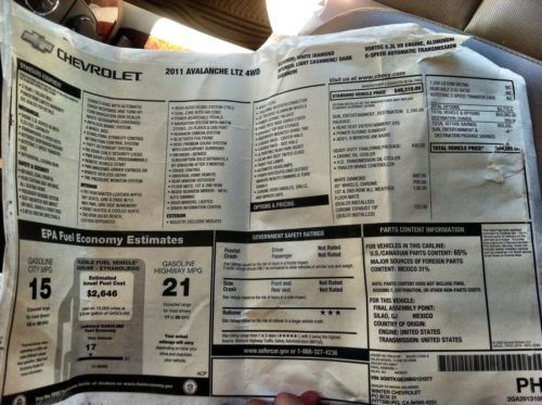 See Photos for Original sticker information! Diamond! Purchased from Winter Chevrolet in November 2011.