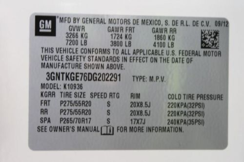 VIN (Vehicle Identification Number): 3GNTKGE76DG202291