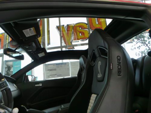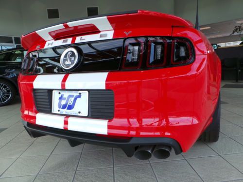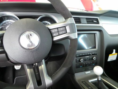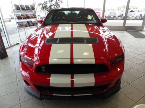 2014 MODEL YEAR,OVER-THE-TOP RACING STRIPE,SVT TRACK PACKAGE,ELECTRONICS PKG W/NAVIGATION,GLASS ROOF,PERFORMANCE WHITE TAPE STRIPE,SHELBY MAN LEATHER RECARO STS,SHAKER PRO SYSTEM,SHELBY COVER *DLR-INSTLD-ACCY*,RACE RED,BLACK LTHR RECARO W/WHITE,5.8L 4V DOHC S/C,6-SPEED MANUAL TRANSMISSION,P265/40R19 F P285/35R20 R TIR,MANUAL 4-WAY DRIVER'S SEAT,50 STATE EMISSIONS,3.31 RATIO LIMITED SLIP AXLE,EXTERIOR,INTERIOR,SPORT BUCKET SEATS WITH,RACING STRIPE INSERTS,ALUM HOOD W/AIR EXTRACTOR,SHAKER AUDIO SYSTEM,AM/FM/SINGLE CD/MP3,SIRIUS SAT SVC - N/A AK&HI,SYNC,AIR CONDITIONING,4.2"" LCD SCREEN,19""X9.5""(F) 20""X9.5""(R),FUNCTIONAL,ELEC PWR ASSIST STEERING,PWR WINDOWS,LOCKS,MIRRORS,EASY FUEL CAPLESS FILLER,UNIVER GARAGE DOOR OPENER,AUTOMATIC HID HEADLAMPS,BREMBO VENTED DISC BRAKES,FORGED ALUMINUM WHEELS,WITH ABS,CARBON FIBER DRIVESHAFT,SAFETY/SECURITY,LEMANS TOP STRIPES WITH,ADVANCETRAC W/ ESC,ABS/TRACTION CONTROL,DRIVER/PASSENGER AIR BAGS,SIDE AIRBAGS,SOS POST CRASH ALERT SYS,SECURILOCK PASS ANTI THEFT,TIRE PRESSURE MONITOR SYS,WARRANTY,3YR/36000 BUMPER TO BUMPER,GT500 SIDE ROCKER STRIPES,5YR/60,000 POWERTRAIN,HID PROJECTOR HEADLAMPS,QUAD REAR-EXIT STAINLESS,STEEL WITH 3.5"" TIP
