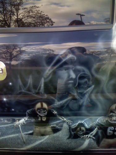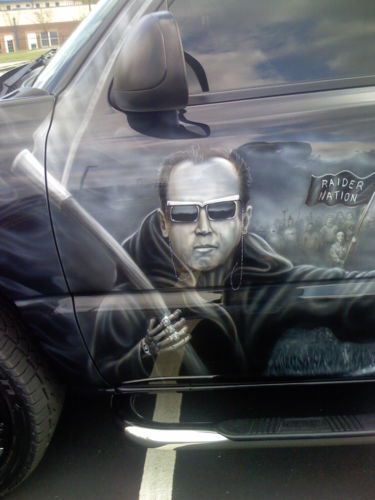 This is a one of a kind special designed custom NFL piece of art! Designed by Mickey Harris of mickeyharrisart.com one of the worlds greatest air brush artists. The truck is comprised of the Oakland Raiders history, done in the iconic form all Raider fans are accustomed to (See Photos). Needless to say this vehicle turns heads, this includes other NFL fans who appreciate the quality of art and paint on this vehicle. The vehicle has additional extras on it such as custom rims, exhausts, wheels, door handles. Companies like Corsa Ehasust, Davinci Designs, Baccarat Wheels, Billet etc. The list is too long. One has to see the vehicle in person to appreciate its art! The truck is in excellent shape and only has 20,000 original miles. Always garage kept, there are no flaws in this vehicle. One owner. Vehicle is in Tennessee, would like to sell to a Raider fan of course and hopefully to someone in or around California who can sport and show the truck representing the Oakland Raiders. Purchaser is responsible for having someone verify the condition of the vehicle and must arrange transportation from Tennessee to their location.