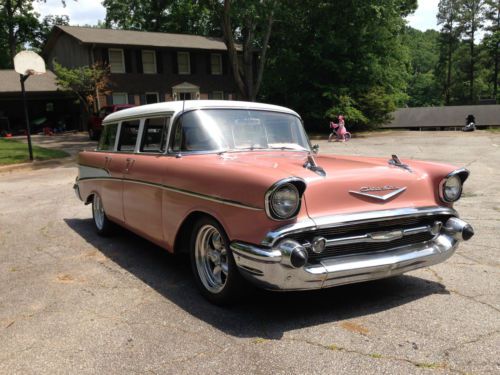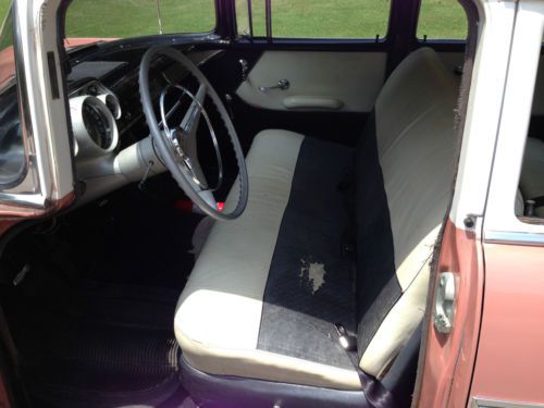 I have for sale a 1957 Chevy 210 wagon. In good driver condition. It has the original 283 w/ 4 bbl carb, 3spd on the column. Original interior, all the chrome and trim are present and in good condition. Has some rust in the bottom of both fenders and rt frt door, not all the way through on the door. Car runs and drives good, trans shifts smoothly, has 4wd brakes, chrome booster and master cylinder, tubular upper and lower control arms in the front, new lowering leafs in the back. Car has new carpet, exhaust, and gas tank, battery and alternator. 6 seat belts installed. I have four kids and we easily fit 3 booster seats and an infant seat for Saturday cruises and Sunday drives to church. 17" polished Americans. Speedo doesn't work but gas and temp gauges do. Dash isn't cut with original AM radio that still works. I have all the original suspension and brake parts plus some new parts, left fender, window channel felt and lower glass moldings. All the glass in the car is still good as well. Asking price is $15500 obo. Cash only.