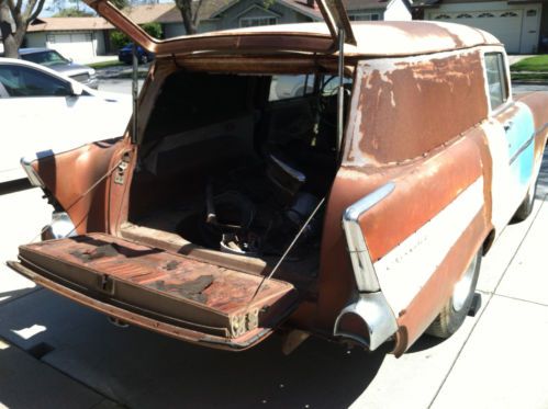 1957 Chevrolet Wagon PROJECT. I got this wagon in a package deal with another car that I wanted so now I'm selling this one. It started out as a 4-door wagon that has been shortened down to a 2-door. NOT cloned but shortened. Look at the pictures closely. Lots of great parts to use to finish or just part out. Hood is extremely straight as well as the rear gate and lift hatch. Comes with lots of trim parts to help finish. Rear tail panel is in excellent shape as well as the rear quarters. Frame has been shortened also. Car rolls and steers. NO motor or Transmission. Rally wheels with decent tires. Dash looks great very complete. Build as a fun little rat rod or gasser wheelie beast at the nostagia drags. Local Pickup. Buyer is responsible for ALL shipping. I can help with loading it on a truck for you. $500 deposit required at end of auction. Cash due on pickup. I have the original title from 1958 from Iowa. Sold with bill of sale only. Thanks for looking. I will answer all emails.