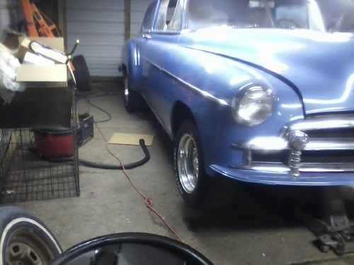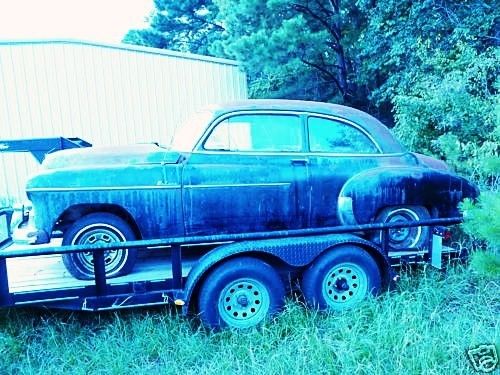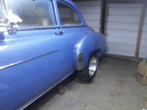 1950 Chevy Styleline Deluxe 2 door, 235 engine with a manual trans. It has a 1 wire 12 volt alternator, with gauges, New aluminium radiator, new wheel cylinders, master cylinder,new fuel pump and water pump. The lights all work. The floors have been repaired and POR 15, insulated, and new carpet added. Power seats from a late model Grand Prix have been installed. The brakes have been repaired and operate well.. All stainless is on or in the car, the headliner needs to be installed as well as door panels. The bumpers need re-chroming. Painted Sherman-Williams base coat/clear coat 4 years ago. It has some checking starting. This is not a perfect street rod but it won't take much to finish it. This car is a Texas car.