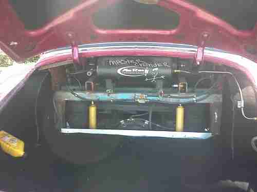 This is a older restoration around 8 years ago. 350 motor balanced 650 demon carb. hooker shorty headers. 350 3 speed trans w/shift kit installed when rebuilt. new alum radiator. runs cool. 90 amp single wire alt. New HITORQ super small starter. 30inch glass packs sounds great and runs very smooth. new rack and pinion front suspension with tubular upper and lower A arms. New GM metric disc brakes. new man mstr-cyl &2-disc prop vlv side mount. new Tilt steering column new airbags on front.. "C" notch in the rear with air bags and gas shocks the inner rear walls removed allowing the car to sit almost on the ground . the air is controled by 12volt valves front and back only. All the stainless on the car has been polished and in very good condition. All the chrome has been re-chromed and is in good condition. The interior is in good condition. All the glass is NEW with new rubber, except the rear three piece glass which is original glass with new rubber. very minimal rust. New 12 volt wireing. I do not have the stock rims. these are 20 inch rims and the tires are in ok cond. I have a bag full of reciepts. I have the Original Owners manual and Model year brochure. The drivers side door was hit and replaced with a 50 pontiac door and the car needs new paint.