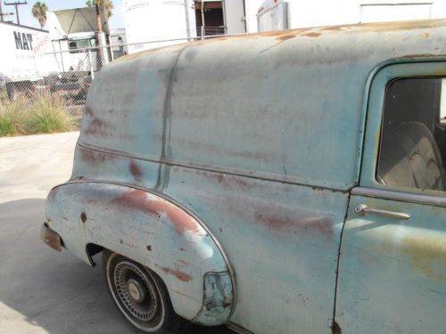 UP FOR SALE IS A PRETTY DECENT 1951 CHEVY SEDAN DELIVERY WAGON. THIS CAR HAD BEEN SITTING IN A BACKYARD FOR OVER TWENTY YEARS IN A NICE, DRY CALIFORNIA NEIGHBORHOOD. THE GENTLEMAN THAT OWNED THE CAR FOR OVER 40 YEARS PASSED AWAY, AND I PURCHASED IT FROM HIS DAUGHTER. THE BODY ON THE CAR IS PRETTY DECENT CONSIDERING IT IS OVER 60 YEARS OLD. IT COMES WITH A SIX CYLINDER MOTOR AND THREE SPEED TRANSMISSION. I HAVE NOT TRIED TO START THE CAR. THE CAR HAS VERY MINOR RUST ON IT THAT WILL NOT BE A CONCERN FOR SOMEBODY LOOKING TO MAKE A COOL HOT ROD. THE CAR IS IN THE LOS ANGELES AREA. I CAN HELP WITH SHIPPING TO PRETTY MUCH ANYWHERE IN THE WORLD. RATES TO YOUR DOOR ARE PRETTY FAIR. $600 - $800 SHOULD GET IT TO ALMOST ANYWHERE IN THE STATES OR TO THE CANADIAN BORDER. I CAN STORE THE CAR FOR UP TO THIRTY DAYS FREE OF CHARGE. AFTER THAT THE COST WILL BE 80 DOLLARS/MONTH. I DO HAVE IT LISTED FOR SALE LOCALLY, SO THE AUCTION CAN END AT ANYTIME, WHICH DOES HAPPEN OFTEN. I HAVE A DMV TITLE REPLACEMENT FORM AS WELL AS A BILL OF SALE. THE CAR IS BEING SOLD AS IS NO WARRANTY . THESE ARE GETTING HARDER TO FIND AND THIS CAR BEING FROM CALIFORNIA MEANS A LOT WHEN WANTING TO RESTORE ONE OF THESE CLASSICS. IF YOU NEED ADDITIONAL INFORMATION, PLEASE GIVE ME A CALL AT (310) 990-8628. THANK-YOU FOR LOOKING AT MY AUCTION. |