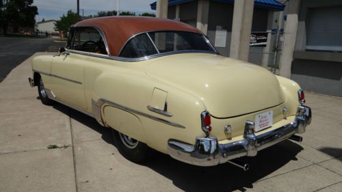 For your consideration is this 1952 Chevrolet Bel Air - 2 Door Hardtop. This car is what some would classify as a restored. Great 50's style with all of todays performance & comforts. This car was built from 2005-2008. The engine was a new 350cid crate motor from O'reilly's, aluminum radiator, billet pulleys, electric push/pull fans, Optima red top battery, Vintage A/C & heat, new TCI turbo 350 trans, 10 bolt chevy rear end, Mustang II rack & pinion front with power steering, 4 wheel power disc brakes w/cross drilled rotors, Front & rear sway bars. Absolutely beautiful all new 2 tone interior, chrome Ididit tilt column, Le Carra wood steering wheel, Dolphin gauges with stainless bezels, floor mounted parking brake, quartz dash clock, electric wipers, Sony am/fm stereo cassette in glovebox, 10 disc cd changer in trunk, seat belts front & rear, interior garnish moldings & window trim are chrome. Power windows, remote doors, security alarm. Exterior sunvisor with stainless outer trim. Dual exhaust with Dynomax mufflers. Jag/Lucas tribar blue dot head lamps, LED tail lamps. American Racing Torque Thrust II'S, radial tires. Bumpers re-chromed, front "T" bar, rear outer bumper extensions. Rocker panel moldings, stone guards front & rear, gas door guard. Inside trunk is finished. Car has been driven 11,400 miles since completion. Comes with a folder full of receipts. The paint quality is not as good as it should be on this particular car. I would rate the paint a 6 1/2 - 7 on a scale of 1-10. Everything else on the car is excellent. Car is advertised nationally and may end auction early if sold. Please feel free to contact kraig @ 563-386-2902 with any questions. Can help arrange shipping worldwide, Buyer to pay any shipping charges. Thanks for looking.