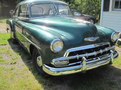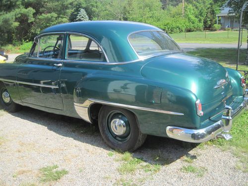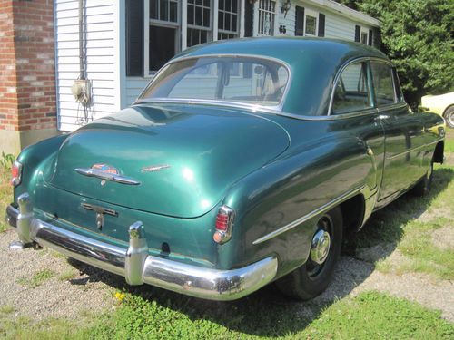 1952 chevy deluxe 2 door coupe all original 6 volt straight 6 cyl 3 speed on the column. The body is very straight and is in very good shape and the interior is in mint condition. The car was all redone and new chrome about 10 years ago. The car runs and drives but motor is tied and should be freshen up. This car would be great for a small block transplant or play with it the way it is. The car will be sold with a bill of sale and a new Hampshire registration and that is the title for that state over 10 years there is no title in that state. Please contact me before you hit the buy it now button and bad feedback will be canceled.