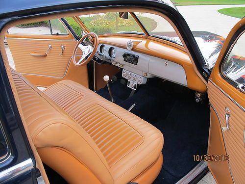 Interior seats are over stuffed rolled and pleated two tone tan interior with matching head liner and dark blue carpet on floor and trunk. The dash features two tone paint with new gauges and clock, mostly original knobs, Kenwood Radio, Gauges for rear Air Ride. Chrome tilt steering column with four way flashers. Tremic 5 - Speed Floor Shifter, new cluch and pressure plate with Lakewood Blow Proof Bell Housing and floor mounted emergecy brake. Car has been rewired with new wiring harness and upgrade fuse box. This is one confortable car to cruise in or for long trips.