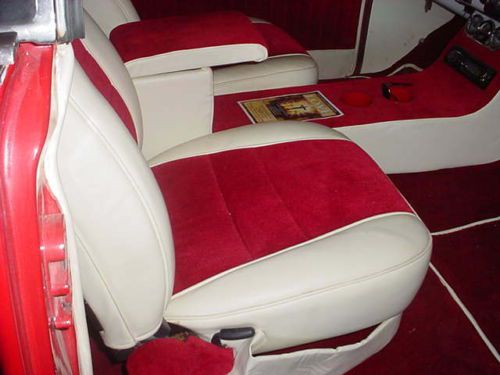 IT FEATURES A 350 CHEVY TUNE PORT/ ENGINE AND AUTOMATIC OVERDRIVE /TRANSMISSION/OLD STYLE CRAGER WHEELS/RADIAL TIRES/ DISC BRAKES ON THE FRONT AND DRUMS ON THE REAR/ULTRA LEATHER AND CLOTH INTERIOR FROM THE FIREWALL THROUGH THE TRUNK/BUCKET SEATS (power on drivers side)CENTER SEAT CONSOLE/AM/FM/CD PLAYER STEREO SYSTEM/RACK AND PINION STEERING. FOR ADDITIONAL INFORMATION CALL 870-935-3886 IF NO ANSWER LEAVE A MESSAGE AND I'LL CALL BACK, I ANSWER ALL CALLS IN THE ORDER I RECEIVE THEM. YOU MAY E-MAIL ME: bjharris36@suddenlink.net |