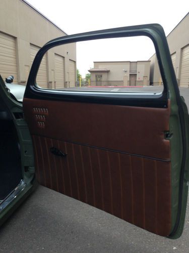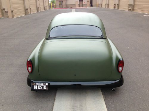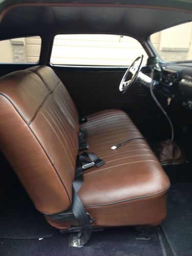 1953 chevy 150 chopped 3 inches with slanted b pillars floor pans and quarters replaced. smoothed firewall shaved door handles with remote poppers and bear claw latches. Mustang 2 front end with tubular control arms and shockwave air ride up front. Adjustable four link with a gambino step notch in the rear, bagged as well. Air ride technologies Big red air management system with digital gauges and independent corner control capabilities. Car is painted gloss black on the under side. It has a brand new Brown & Brown 350 with 12,000mile warranty still good, a turbo 350 trans 10 bolt chevy rear end with brand new posi unit and axles with a freeway friendly 3.08 gear. Glass Pipe muffler exhaust system for a killer sound. New brake lines installed, all new hoses for air ride system install to insure no leaks in the lines. New shifter box for new Swan shifter installed. New wheels painted flat black with custom caps to match the color of the car (Olive Drab). All new interior from The Interior Shop with bullets on front door panels and rear seat panels. All new custom sound system from Unique Audio with two sub woofers and new speakers with I-pod connection. Brand new Brown & Brown motor installed with only 1000 miles on it since installed. New paint job on front bumper, grill and brand new rear bumper with paint. Cruises on highway at 85mph no problem, runs awesome, sounds great and body is super straight. There are NO door windows. No power steering. No door locks. I liked the Rat Rod look and wanted something to be left unfinished. People love this car, gets a ton of looks and thumbs up!!! Especially the duck hood ornament and skull shifter. I have spent the last 8 months restoring this car so that I knew every time I got in the car it would start right up and I could drive hours on end with no issue. If you want a awesome car that runs great with no issue and looks awesome this is it. I have all receipts for work done as well and is all documented.