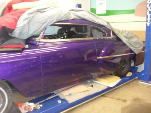 BODY: chopped 3 1/2", frenched antenna, filled door handles and trunk lid, new chromed 13 tooth grill, extended fender skirts, new windshield, gas tank, electric wipers, gauges with bezel, bumpers need to be chromed or painted.much more