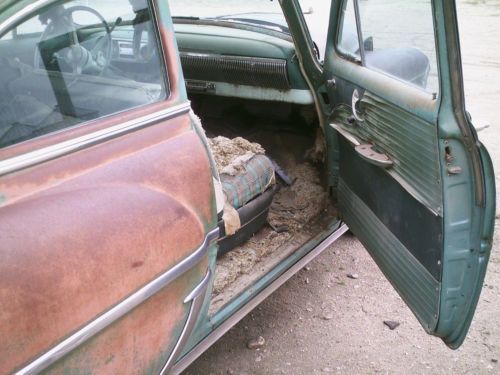 The car has the original powerglide and inline 6 cylinder which from my understanding is the 235ci 125hp in 54'. Both are now currently sitting in the car, engine is bolted in and trans is in the trunk ready to ship. Powerglide still has good looking fluid, the engine still has oil. The motor turned over with ease a year ago and wont now. Im sure with popping the head and soaking the cylinders it can be freed up no problem. I just havent had the time, I sprayed them down a little when I moved the engine and trans from the shed to the shop. It would make great project. It has some rust in the trunk and normal areas like floor boards and rear quarters but its all there for the most part (hood got twisted by the wind). Buyer resposible for pick up or shipping. Any questions or for more pictures feel free to ask, thank you. - Nick |