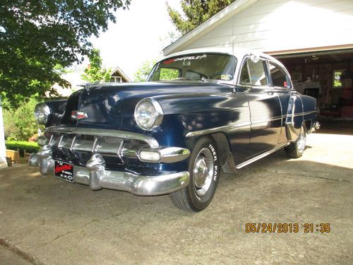 1954 Chevrolet Bel Air 4dr 235 6cyl Rebuilt Motor Good Shape Blue And White on 2040-cars