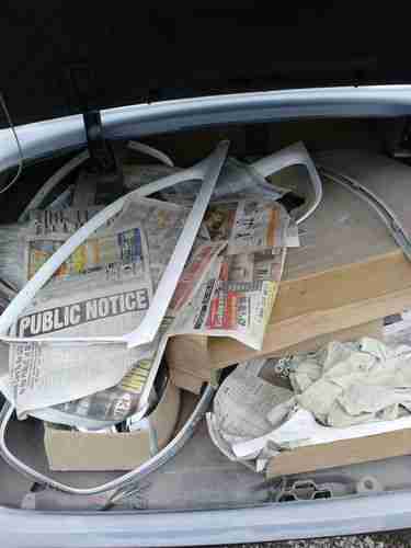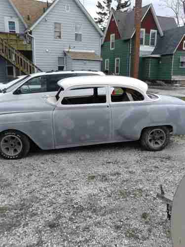 1954 chevrolet belair 2 door, was on rotisery to paint bottom , repiace front paseenger floor trunck, has new lower quarters, has aluminum backed hush mat insulation sticked down in interior expensive brand, trunck new,all 100percent welded , frame has 74 nova front stub welded on, all new bushings, ball joints, tie rods all good, all mounted on new rubber frame mount kit, power sterring, all new brakes front to back rotors front drum rear all parts new all lines new,new power asist unit and masstercylinder new mounted under car new prorportioning valves front adjustale, new gas tank all new lines ,locking gas cap new, new fuel pump,new dual exhaust,rear end is 71 chevelle think 308 gear,new radiator aluminum, 1968 hp 350 chevy motor, runs good , been sitting 2 years need good tuneup had running for an hour today, , 2 barrel carb set up new rebuild kit,400 chevy trans, think needs new pan leaks when sits done gasket 3 times still leaks, have all original chrome great shape, rare to find all the side spears very expensive on ebay, plus 800.00 dollars in new chrome , badges, emblems side srears, rear bumper good shape new mounts, original rear taillights,trunk been painted sparkle trunnk paint, inside trim painted white dash painted white top painted white,, have 86 monte carlo ss sterring column and bucket seats front no rear seat, have rear window, no windshield or side windows can buy on ebay but have all new seals,fiuzzies,tracks 500.00 bucks for all that,, car is in building primer needs finish sanded and paint body is arrow straight,top painted white urethane paint, bottom of car 3 step eastwood rust paint system, has old rims tires hold air, have 3,000.00 in new parts on car and in boxes,front end is shaved as in pictures set up for 56 corvet?, chrome teeth like original 54 belair look 11 teeth and a custom bar to hold teeth, teeth in great shape,, clear illinois title,most everything is new when put on car, and painted bolts and brackets , need work to finish,doors close perfect have extra trunk lid to, in dekalb illinois, shipping set up buy buyer at ur expense sold as is project very cool stance little lower in front,brand new battery today, has a new wiring harness 21 circuit small fuses painless, wires marked every 4 inches,, jim at 1 815 501 2755